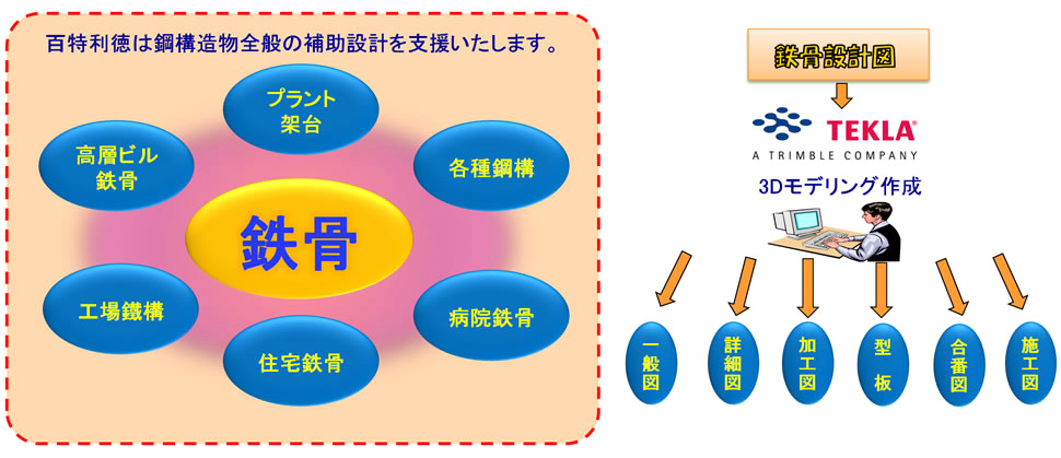 鉄骨の設(shè)計(jì)図(意匠図、構(gòu)造図)と設(shè)計(jì)検査用図面等の作業(yè)を受託しております。TEKLA 、AUTOCAD等ソフトを駆使して、鉄骨の詳細(xì)設(shè)計(jì)と鉄骨の工場(chǎng)、現(xiàn)場(chǎng)、加工、組立用の図面とCADデータを提供いたします。