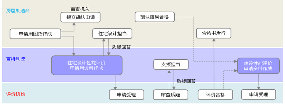 本公司的【住宅申請支援】業務的主要內容是,住宅性能評價,長期優良住宅,BELS的申請代行業務和節能性能值(房屋隔熱性能+節能減排性能)計算的代行業務。