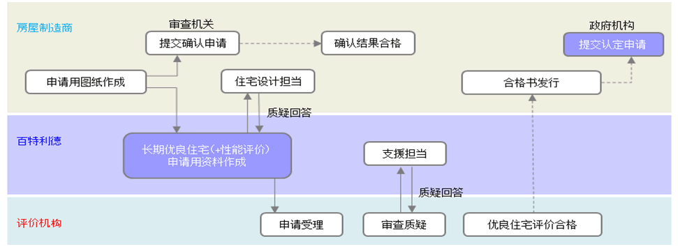 依據日本的【長期優良住宅的認定制度】,取得【長期優良住宅建筑等計劃相關技術的審查適合證】的相關技術支援業務。